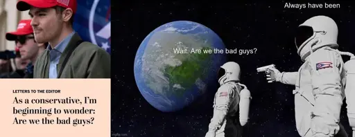 Yuritopiaposadism [none/use name]@hexbear.netEnglish · 7 hours agoWait. Are we the bad guys?hexbear.netimagemessage-square17linkfedilinkarrow-up195arrow-down10
