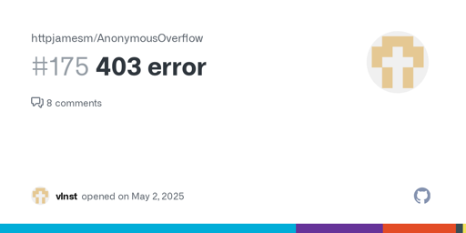activistPnk@slrpnk.netEnglish · edit-27 months agoStackExchange / StackOverflow ratchets up the aggression against non-boot-licking free-worlders, using Cloudflare to kill off decentralised accessplus-squaregithub.comexternal-linkmessage-square0linkfedilinkarrow-up11arrow-down10