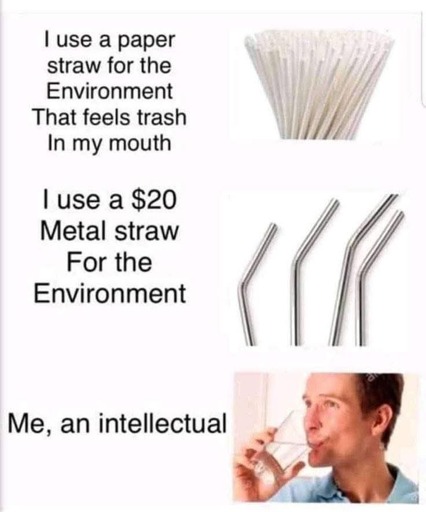 Laws related to plastic straws are like the only environmental legislation that’s been passed recently (aside from the Inflation Reduction Act’s various environmental policies which hell yeah) which is what they’re getting at. Democrats are only able to pass the tiniest of laws to reduce environmental impact and Republicans are out here actively trying to genocide queer and brown people.