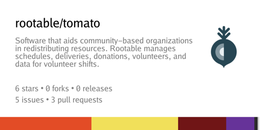 It manages schedules, deliveries, donations, volunteers, and data for volunteer shifts, see also: https://rootable.org/