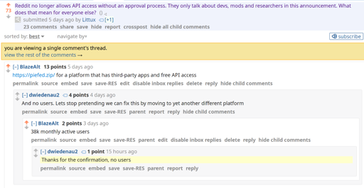 For the whole thread: https://old.reddit.com/r/RedditAlternatives/comments/1ouk003/reddit_no_longer_allows_api_access_without_an/