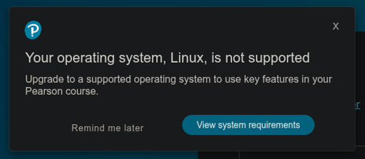 I’m lucky enough that by the time I was all-in on Linux, I wasn’t taking courses that used that exam model, but it’s why I make sure that the helpdesk at my current institution offers loaner devices to students who either have computers incapable of running the proctoring software, or who simply don’t want that kind of software on their own machine. It’s a pain in the ass to work with, but apparently it’s enshrined in our faculty’s union contract.