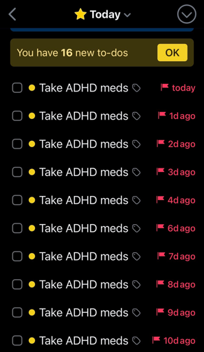 The fact I saw this just after realising I forgot to set my timer for my ADHD med and have no clue when it’s next due 😅