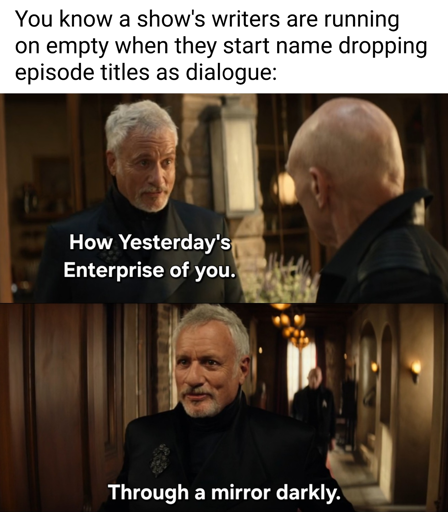 I don’t watch NuTrek (other than lower decks). People tell me Strange New Worlds is good, but I was never that into TOS and I’ll be damned if I’m going through a singing episode.