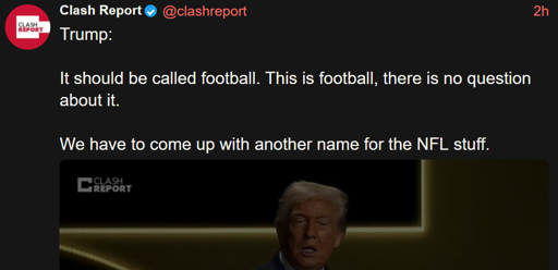 when I first read this I assumed he was saying we shouldn’t kall it the NFL because its kalled Football and he just didn’t know what NFL stood for, that was more believable to me than him saying the rest of the world is right about something