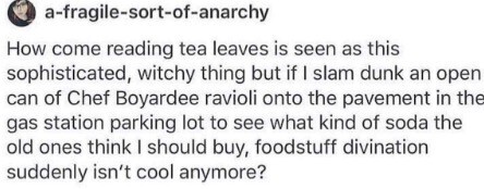 compostgoblin@piefed.blahaj.zone to Witchy Memes@lemmy.worldEnglish · 2 months agoRavioli divination piefed.cdn.blahaj.zoneimagemessage-square16linkfedilinkarrow-up1337arrow-down14
