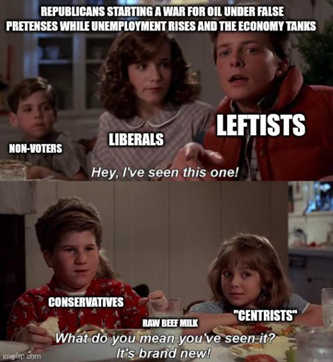 I do find it kind of funny that even liberals are against it, because they have famously short memories. I know it’s partly because he’s being so brazen about it, but with this meme, it also strikes me as when you reboot a franchise too soon lol.