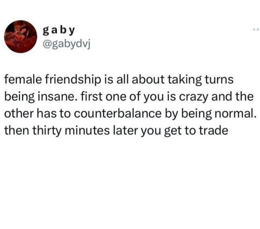 Not true at all. All my female friends are very down to earth. One of them did burst into tears the night before her wedding for seemingly no reason, but that’s an emotional time and out of the ordinary for her. I’m probably the craziest one but I still think I’m very chill. It takes a lot to make me un-chill.
