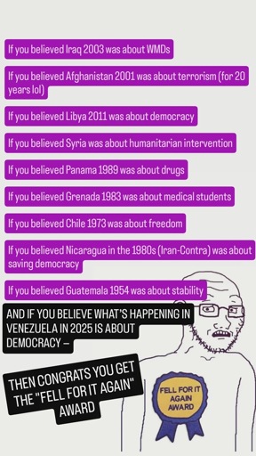 Yeah so much better to have americans screaming “we took it by force, this is OURS. MIGHT MAKES RIGHT HOORAH USA USA USA!” while they kill me instead of “this is for democracy and human rights” while they kill me