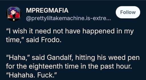 fossilesque@mander.xyz to Lord Of The Rings Memes@lemmy.dbzer0.comEnglish · 1 month agohahahamander.xyzimagemessage-square8linkfedilinkarrow-up1346arrow-down16