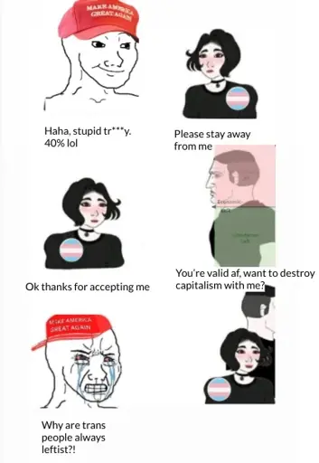 Actually trans women receive more attention by being sexualized and fetichized by men, or with memes about how she’s seen by men, just misoginy, not “good attention” and every woman goes through this