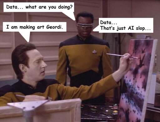 Data is an actual thinking machine. AI in the true sense of the word. LLMs are called AI, but they have nothing to do with thinking whatsoever.
