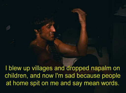 I’d say the cops were still shit because even without the context of Stallone being a former soldier, they were still chuds who harassed him for being a “vagrant” and ruining the charm of their small town.