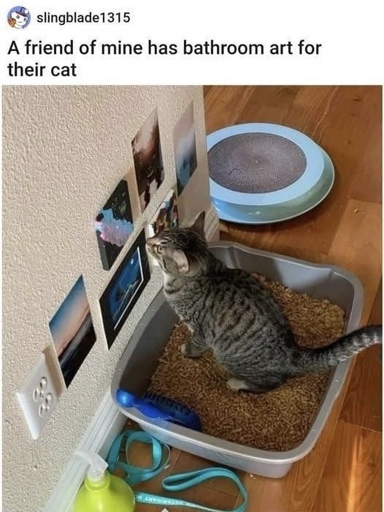 minus-squarelasta@piefed.worldlinkfedilinkEnglisharrow-up12·14 days agoThere was a great post on Reddit about someone designing a maximalist style bathroom for their cats. Link