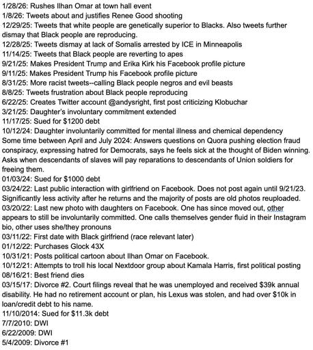 https://www.reddit.com/r/TrueAnon/comments/1qpnj18/a_glimpse_into_the_life_of_the_man_who_attacked/ (thread has some sources about his past that lines this timeline up)