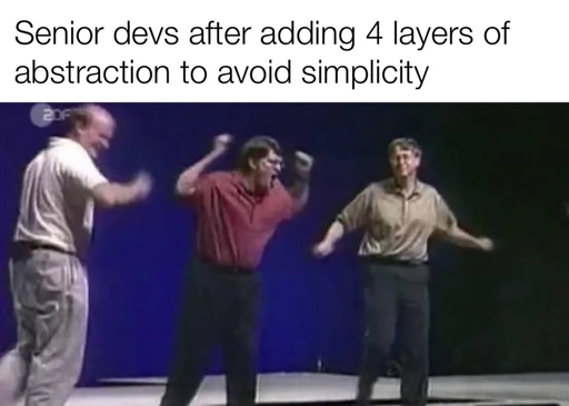 minus-squarered_tomato@lemmy.worldlinkfedilinkarrow-up81arrow-down1·18 days agoWhy should I want simplicity? I want to make unnecessarily complex programs to gatekeep those pesky junior programmers.
