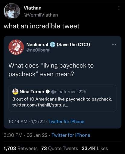 Paycheck to paycheck can be a pretty broad term. I worked at the bottom rung in healthcare scraping by and had to endure listening to people making 3x what I made talking about when their check was gonna hit the bank. It’s easy to be broke when you have a spending problem