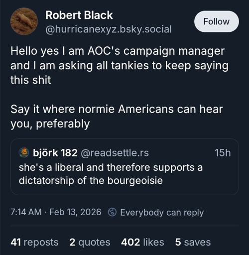-Uses terminally online insult, “tankies”, to refer to actual socialists.