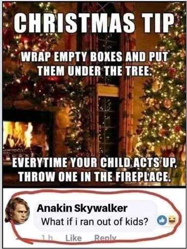 minus-squareOpenStars@piefed.sociallinkfedilinkEnglisharrow-up4·15 days agoDon’t mix them up! The presents, or the kids v. Anakin part? “Yes”!