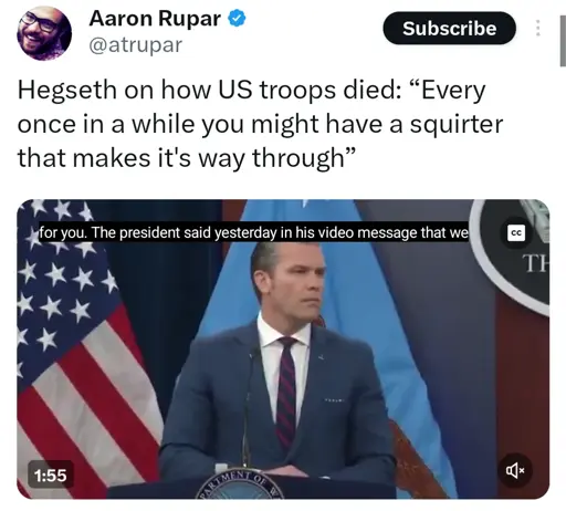 edit you know what since is c/memes I’mma just speak with authority on this matter and translate for you all that this means a significant number of the US casualties are from close range AK mag dumps to the groin and from bayonette charges. you didn’t think it was possible in the good year of our lord 2026 but here we are.