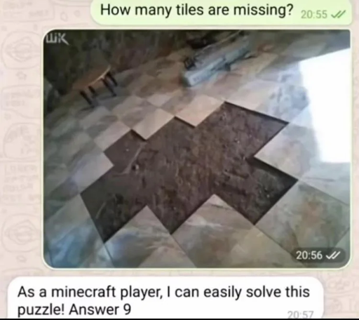 minus-squareLojcs@lemm.eelinkfedilinkarrow-up1·1 year agoIf you see the bottom left as 1 wide instead of 2 it’s easy to count 9. I did a couple times before seeing that other comment