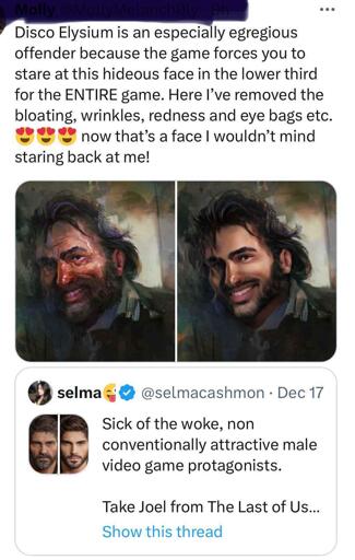 ByteOnBikes@slrpnk.net to gamingcirclejerk@lemmy.world · 1 year agoSick of woke ugly men in my Vidya gamesslrpnk.netimagemessage-square61linkfedilinkarrow-up1501arrow-down118