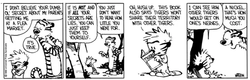 On a deeper level, Hobbes is essentially Calvin talking to himself, and knowing how Calvin is treated by his father, you’re perfectly right, poor Calvin …