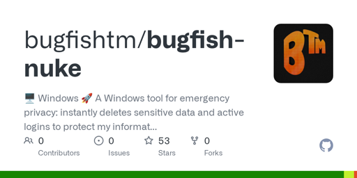 arrow-up123arrow-down1external-linkGitHub - bugfishtm/bugfish-nuke: A Windows tool for emergency privacy: instantly deletes sensitive data and active logins to protect my information during unexpected searches or house warrants.github.comTablaste@linux.community to Privacy Guides@lemmy.oneEnglish · 5 months agomessage-square1linkfedilink
