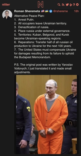 RobertAnderson2 [none/use name]@hexbear.net to Slop.@hexbear.net · 8 months ago“Arrest Putin”hexbear.netimagemessage-square53linkfedilinkarrow-up1132arrow-down12file-text