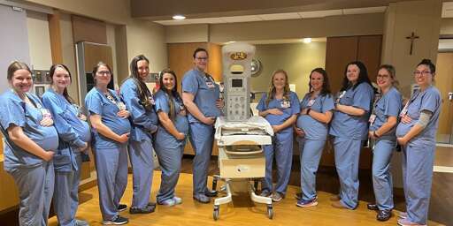 From the moment you are confirmed pregnant you are not allowed to work in any capacity that could endanger you pregnancy - no heavy lifting,no night shift, no overtime, no patient contact that could lead to infections or endangerment (e.g. needle injuries, anesthesia gas, blood, violent patients, etc.). If the hospital can’t find a suitable position (e.g. in the outpatient clinics,etc.) you stay at home with full pay - and you are basically unfireable, especially due to anything pregnancy related. Six weeks before the estimated due date you are forbidden to work unless you expressly volunteer to do so (and even then the conditions above must be met). (This is,btw, partially an international agreement by an UN organisation that the US refuses to ratify)