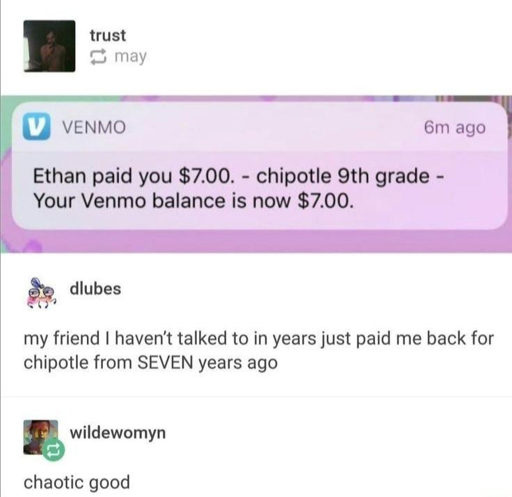 You know what, I’m happy Ethan is in a place where he can afford to pay people back