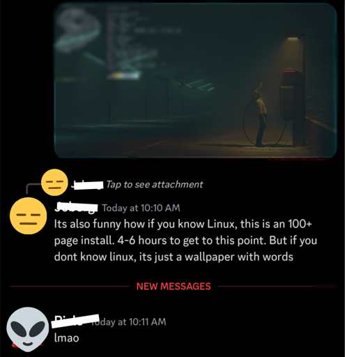 MidsizedSedan@lemmy.world to linuxmemes@lemmy.world · 7 months agoBragging about Linux is hardlemmy.worldimagemessage-square48linkfedilinkarrow-up1336arrow-down16file-text