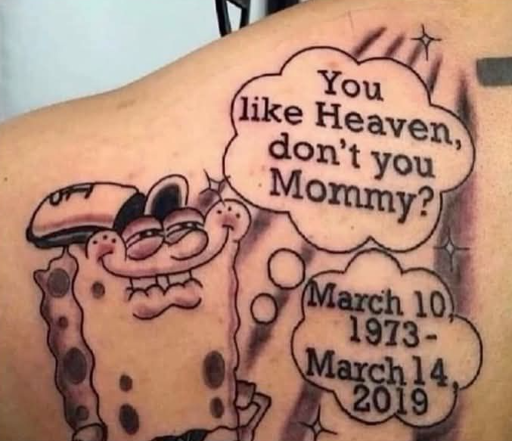 RegularJoe@lemmy.world to Awful Taste But Great Execution@lemmy.world · 7 months agoSpongeBob Tattoolemmy.worldimagemessage-square10linkfedilinkarrow-up1196arrow-down113