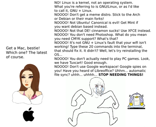 I’d understand getting Windows instead of Linux… But MacOS? That things has the usability of a bent spoon.