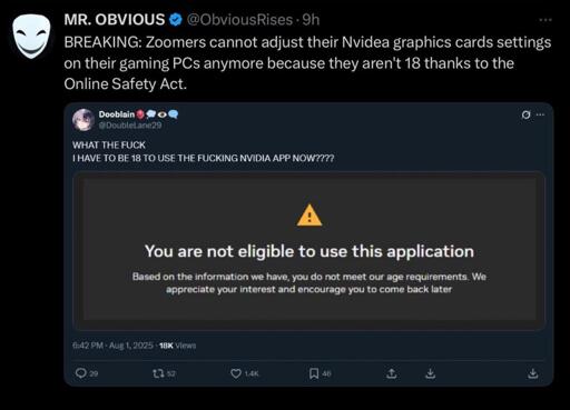 The user isn’t even British, so this can’t be because of the OSA: https://xcancel.com/DoubleLane29/status/1951680086031122662