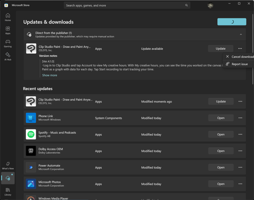 I have the perpetual license for Clip Studio Paint. If you aren’t familiar with their licensing model, basically I don’t get the minor update versions (4.1, 4.2, etc). I only get security patches and hotfixes. My issue is every time Microsoft Store’s update runs, it tries to install 4.1.0. Obviously, the Store is just seeing a new version present and isn’t checking any licenses or anything. Is there a way to block CSP from ever updating through the Store?