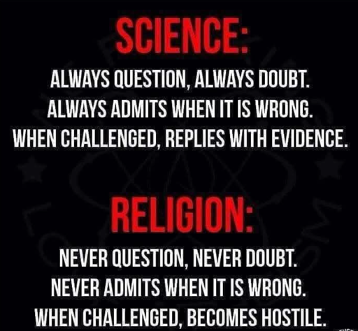 As a anti religious person this meme ignores the reality of science to present its “ideal” while not extending the same to religion.