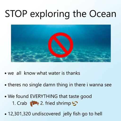 Lies! We shouldn’t explore the ocean cause we will wake up an eldtritch horror that will end the world. Madness for everyone.