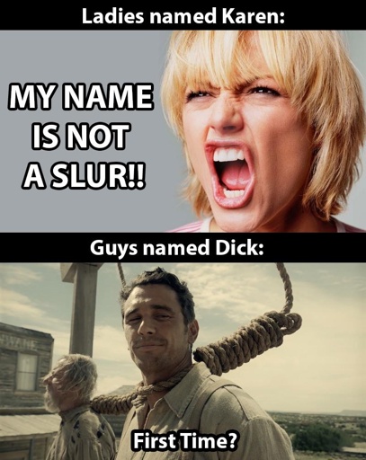 You can pretend a meme makes you right, or you could switch from dick to cock and from Karen to any other word that isn’t 2 million people’s first name.