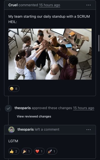 Cruel@programming.dev to Programmer Humor@programming.dev · 16 days agoNazis are mobilizing and becoming agile. Stay safe, everyone.programming.devimagemessage-square12linkfedilinkarrow-up1257arrow-down115