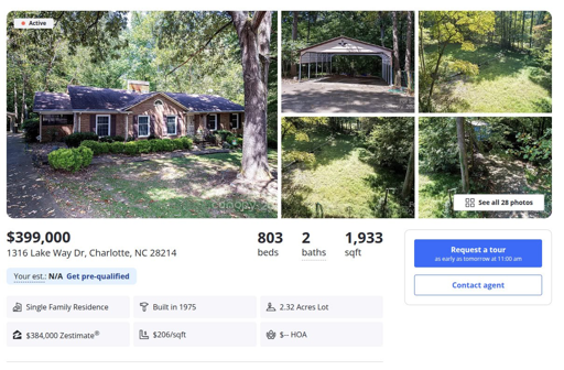 2.3 acres in that neighborhood is where the asking price comes from. The Charlotte market is just that hot.