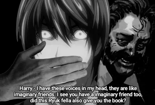 Light furiously scribbling every variation of Harry DuBois into the death note, unaware that the name he needs is Tequila Sunset