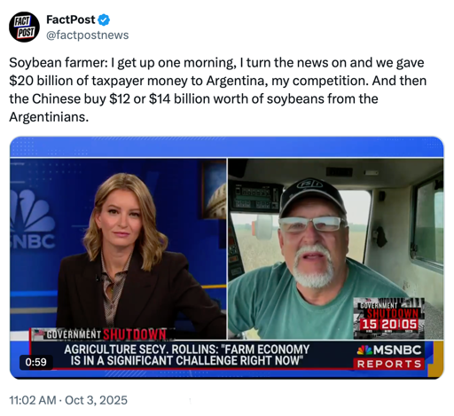 Brother I don’t know what you think a trade war means if you thought you’d still be able to sell China your soybeans with no issue