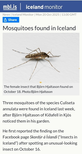 Posadas [he/him, they/them]@hexbear.net to Chapotraphouse@hexbear.netEnglish · 2 months agoThere are now mosquitoes in Icelandhexbear.netimagemessage-square26linkfedilinkarrow-up1106arrow-down10file-text