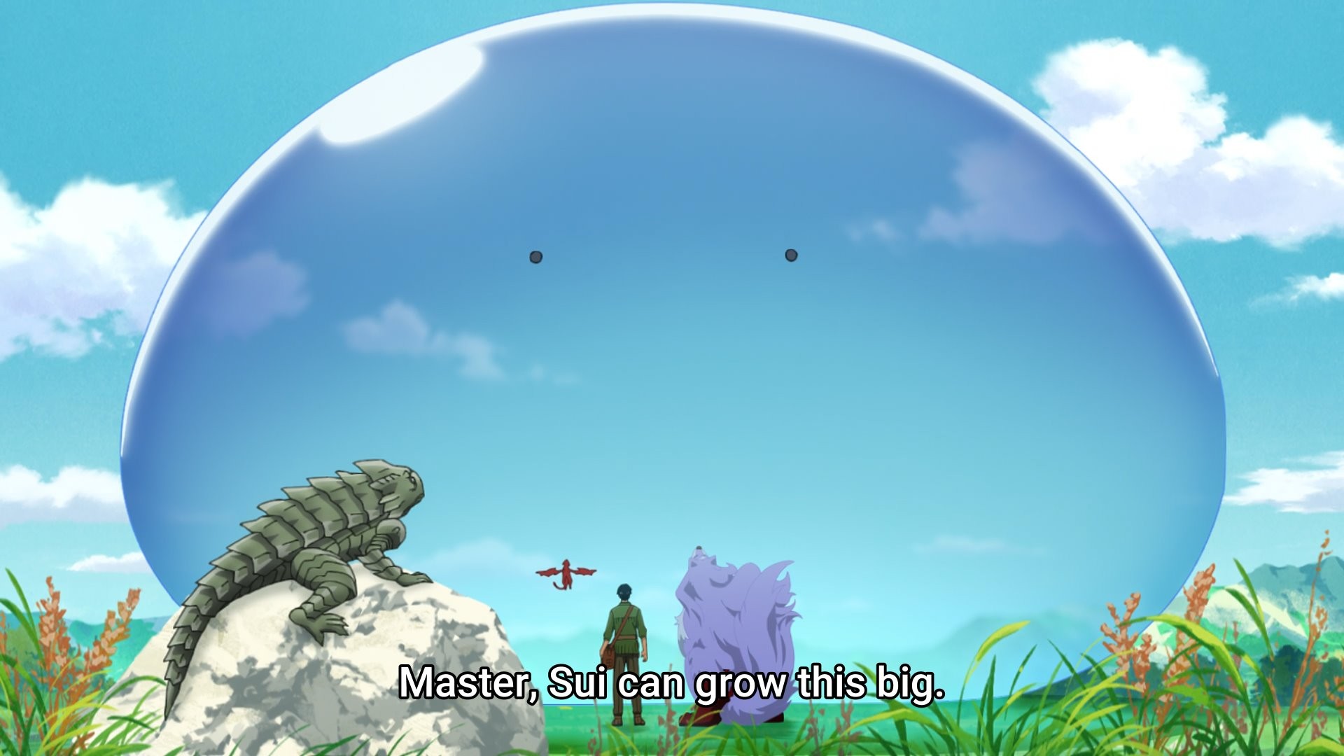Huge slime Sui was cute, and the voice acting was excellent too. Its size even surprised Fel so it is stronger than other huge slimes of the world.