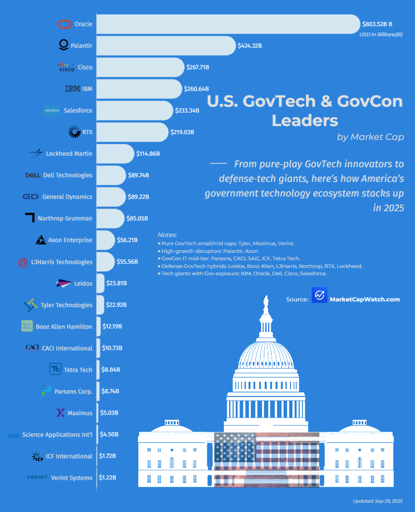 Jimmymcool@lemmy.worldOPtoData is Beautiful@lemmy.world•🏛️ U.S. GovTech & GovCon Leaders by Market Cap (2025)English