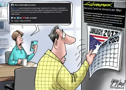 31·17 days agoI’m betting we’re about to see the Venezuelan political pendulum swing with the impertus of a howitzer shell towards fascism.