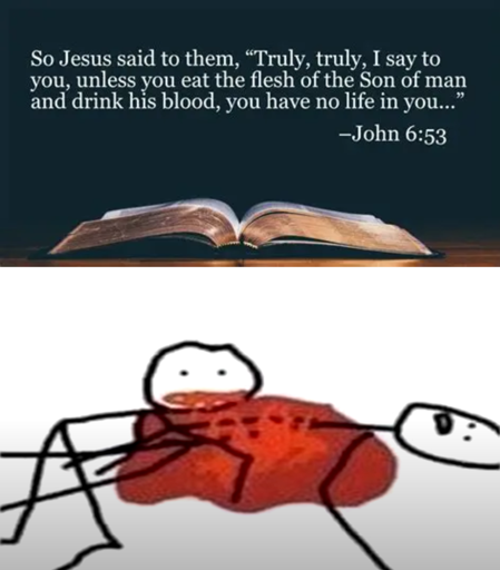 I just got reminded of that cutscene in a first person shooter named Blood, and at the same time, there was a silly video whose absurd image popped in my mind